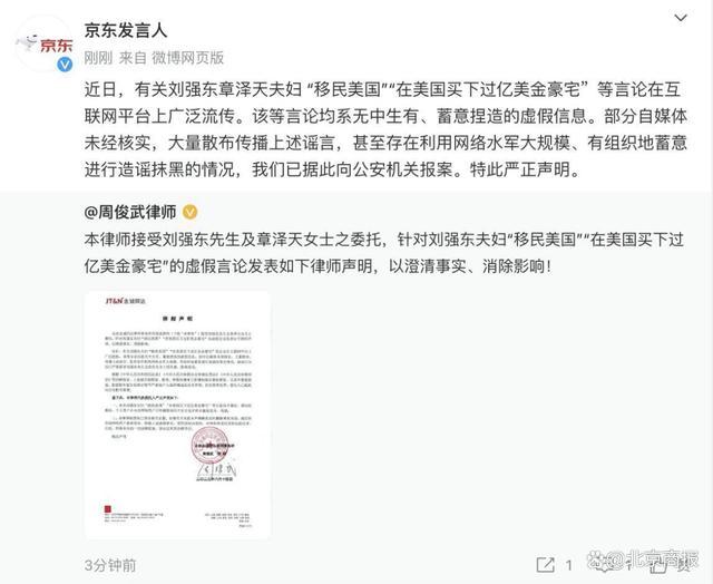近日,干系刘强东章泽天配偶 “外侨好意思国”“在好意思国买下过亿好意思金豪宅〞等言论在互联网平台上广博流传。该等言论均系飞流短长、打算握造的裂缝信息。部分自媒体未经核实,普遍分布传播上述流言,以至存在欺诈汇注水军大范围、有组织地打算进行指责抹黑的情况,咱们已据此向公安机关报案。特此严正声明。